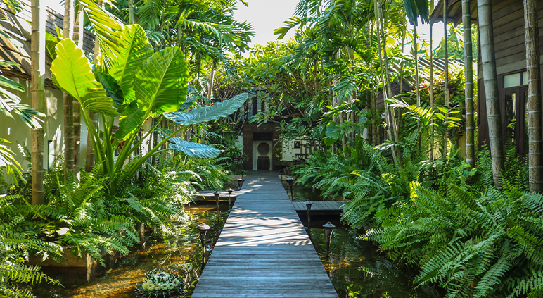 Entouré de végétation luxuriante et de plantes tropicales, ce jardin exotique est le lieu parfait pour un séminaire innovant ou un événement professionnel. Il inspire à la fois la créativité et l’évasion, tout en offrant une ambiance unique.
